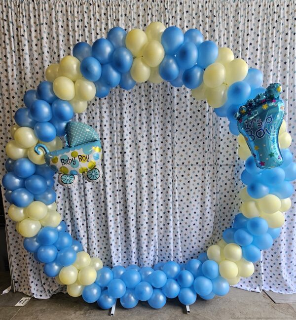 Grote ronde ballon boog met achtergrond. Dit is bv voor een babyshower.