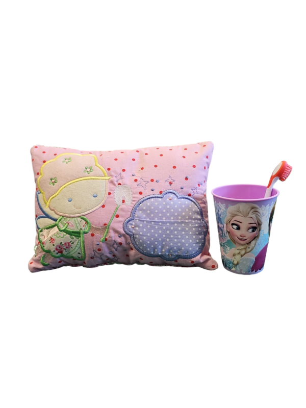 Een tandenfee kussen. Hoe leuk is dat. Aan de voorkant zit een klein vakje voor de tand in te doen en aan de achterkant kan de tandenfee eventueel nog een briefje achterlaten.